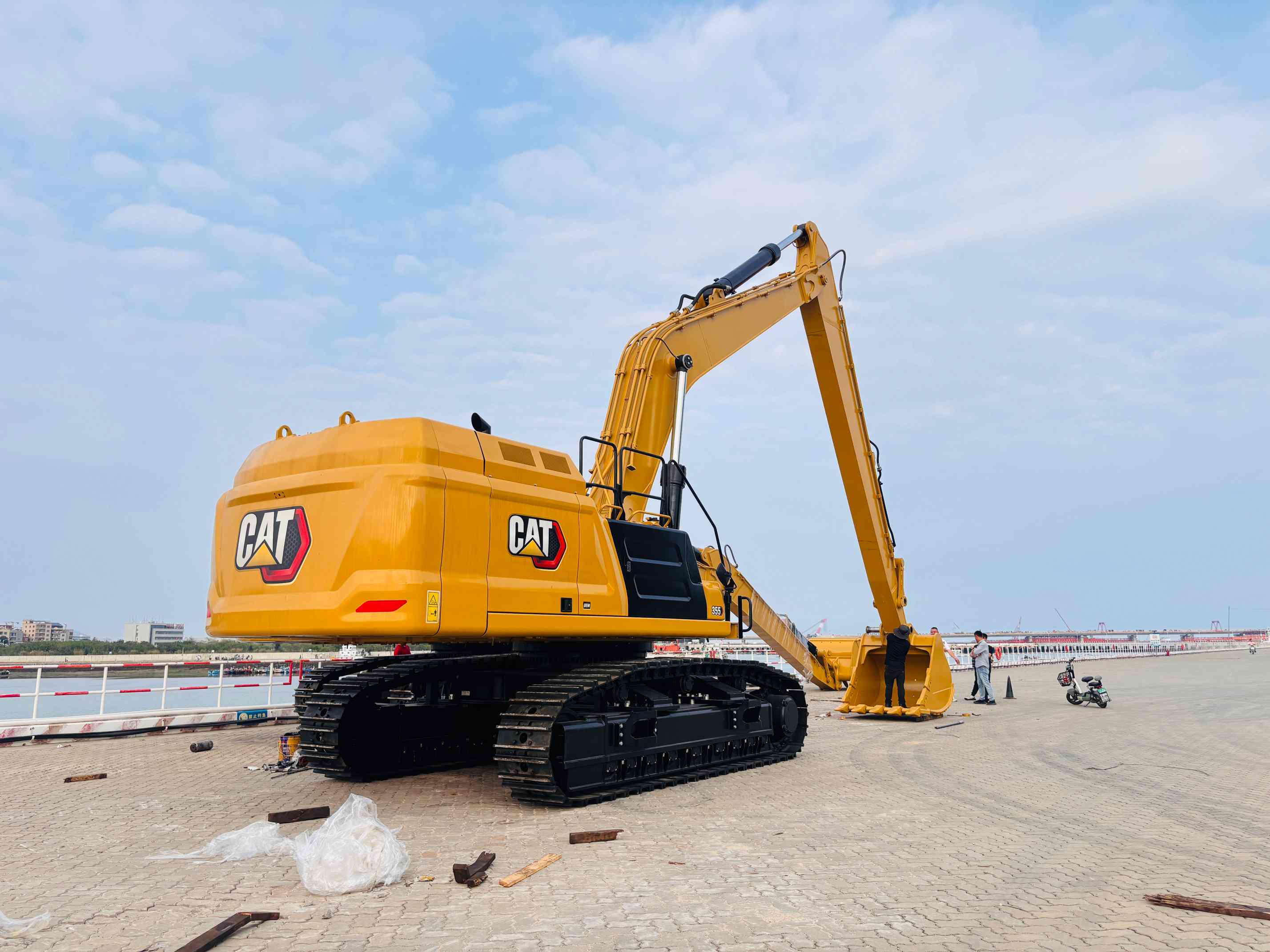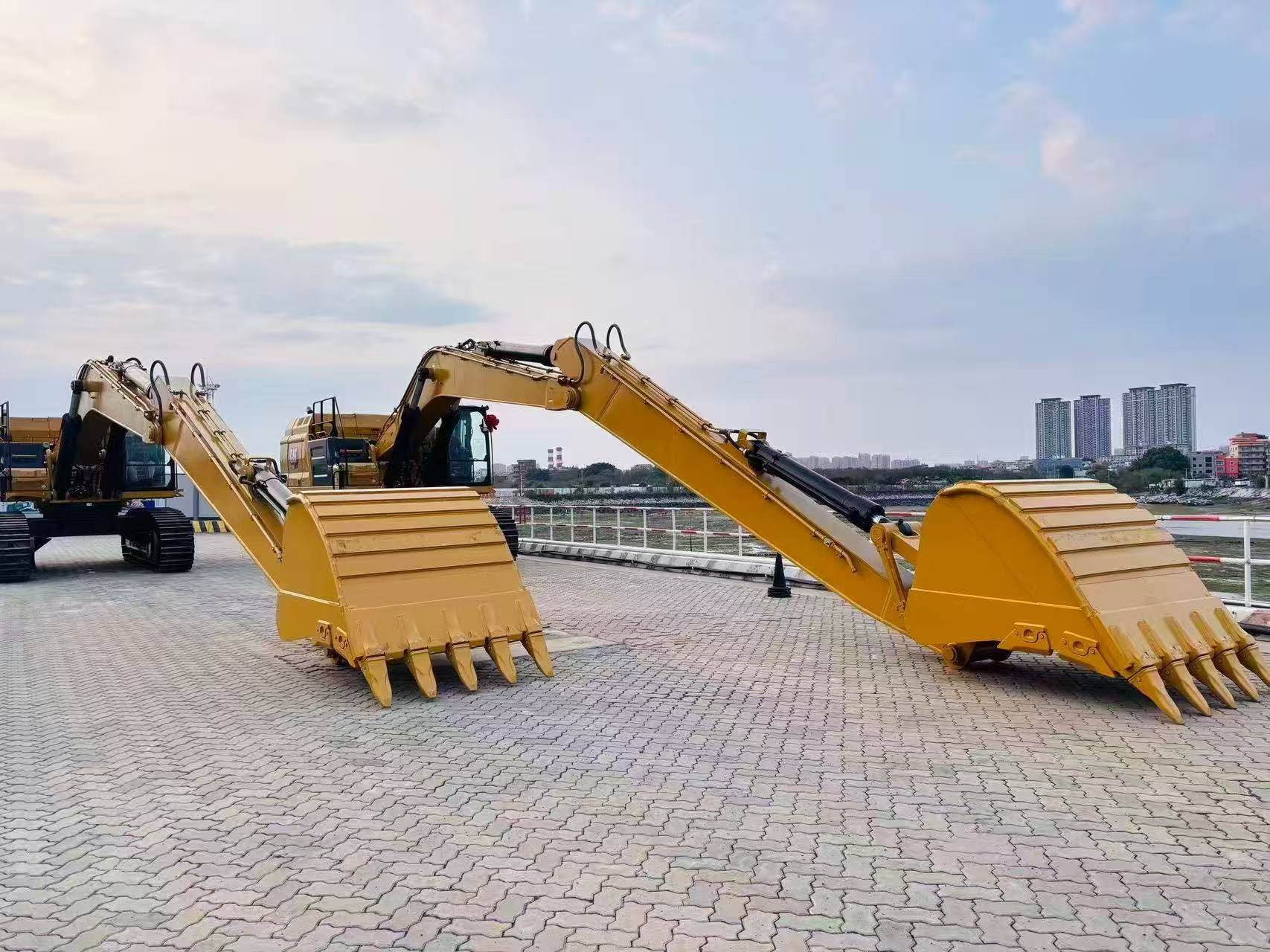 The CAT355 Long Boom is engineered specifically for marine and waterway construction, bringing powerful performance to the most challenging maritime environments. One key feature that sets this model apart is the small boom being longer than the large boom, a design tailored specifically for maritime work. This unique configuration extends the machine's reach and enhances flexibility, making it perfect for deep-water operations and other waterway tasks.